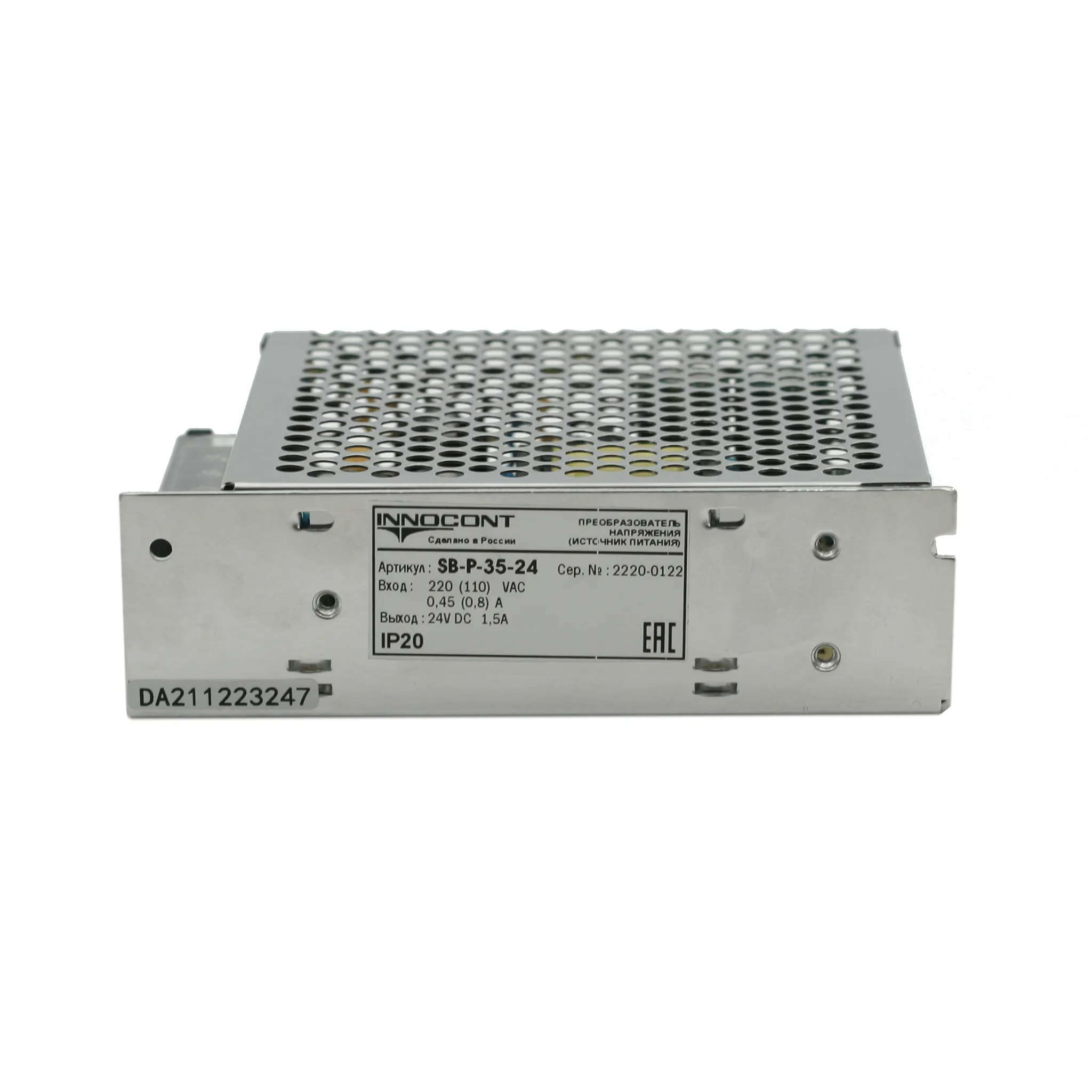 Источник питания INNOCONT -10 +50С, IP20, вход: 220VAC, 0.45А, выход: 35W, 24VDC, 1.5A, типы защиты: КЗ, перегрузка, перенапряжение SB-P-35-24 обеспечивает преобразование входного переменного напряжения - 110/220В, в постоянное напряжение - 24В. Предназначен для питания стабилизированным напряжением приборов и датчиков, любых систем автоматизации бытового и промышленного назначения. Источник питания стабилизированный (AC-DC преобразователь). Типы защиты: короткое замыкание, перегрузка, перенапряжение.