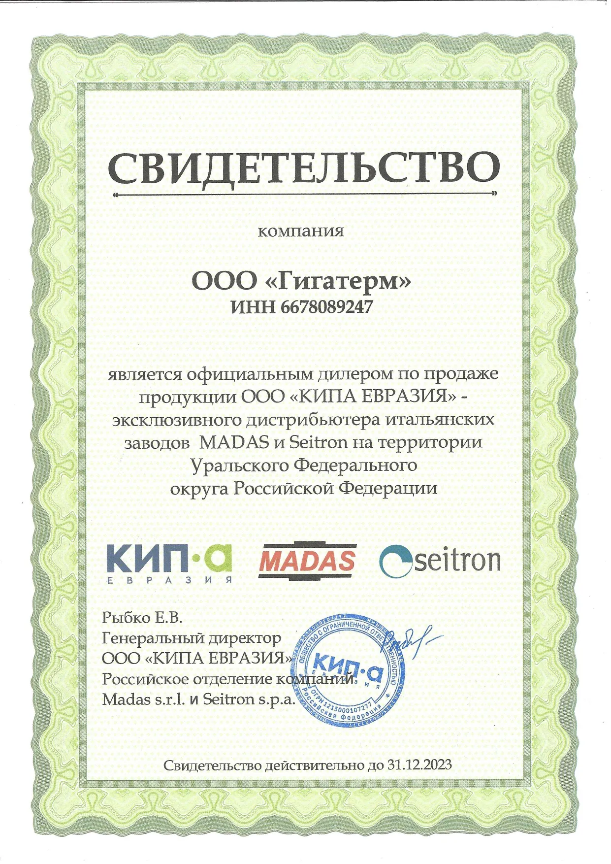 Сертификат КИПА Гигатерм